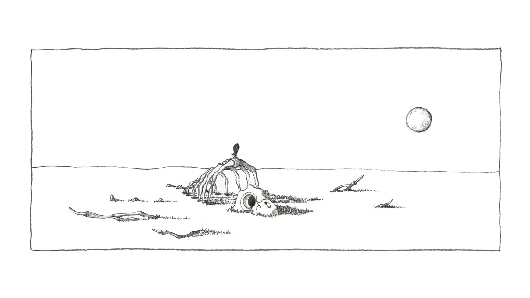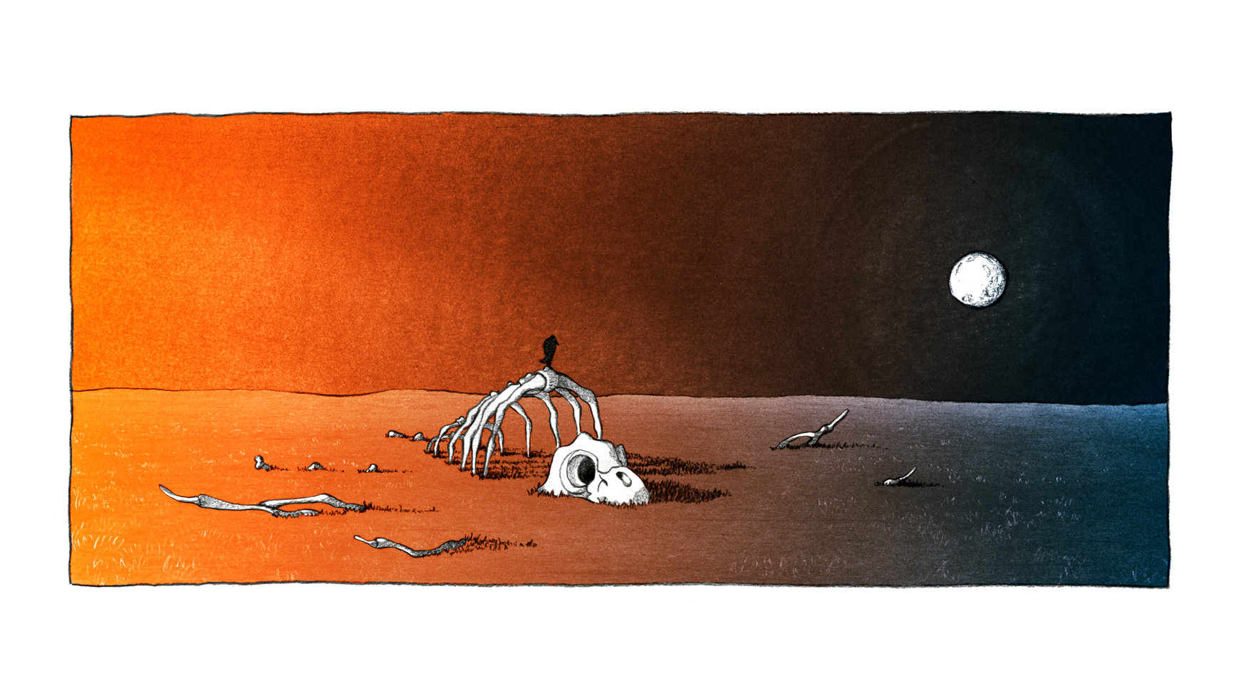 Illustratie | Potlood en houtskool op papier, digitale kleur | 36x15 cm | Autonoom werk | 2025